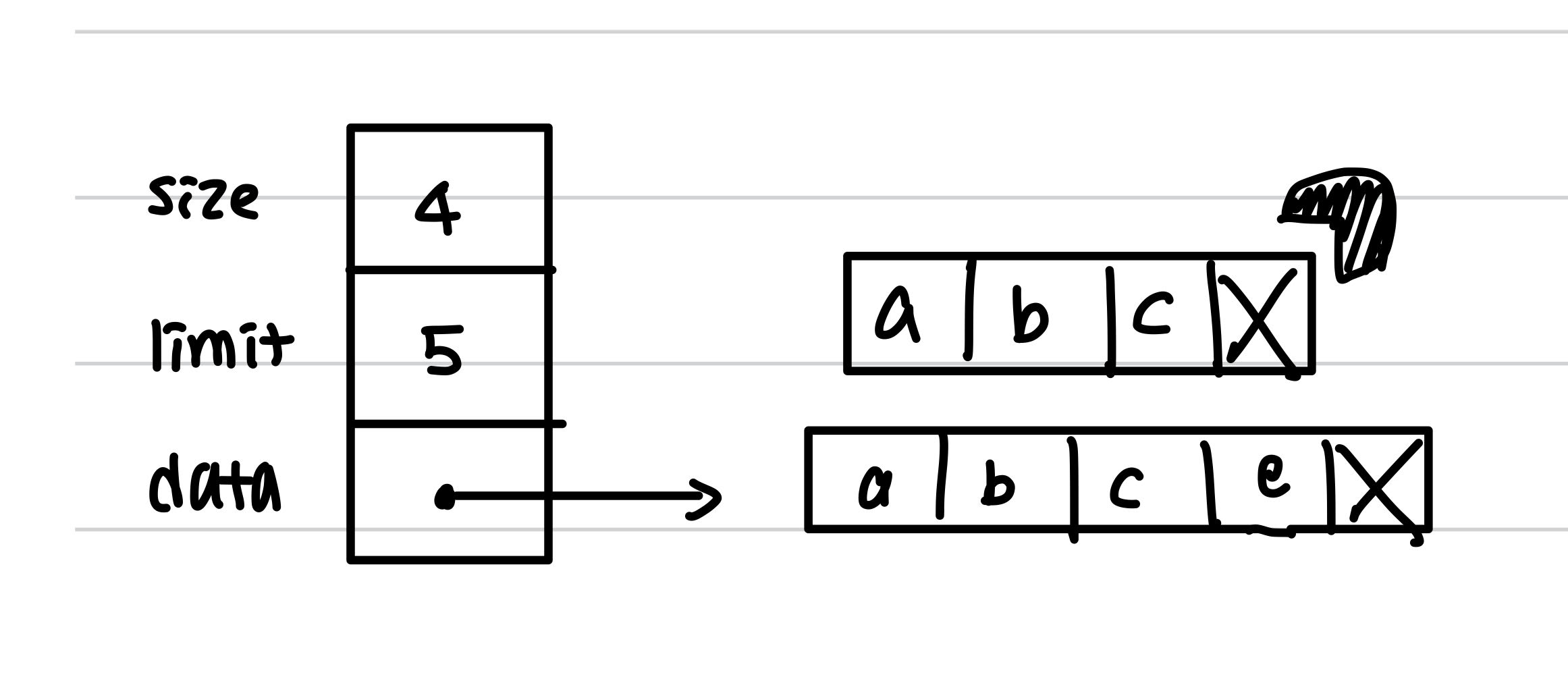 -> size가 4가 되고 limit과 같아지면서 array를 resize해야한다.