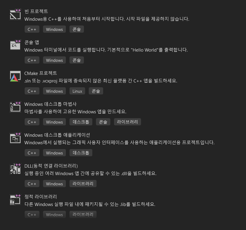 새로운 프로젝트를 만들고자 한다면 아래 화면에서